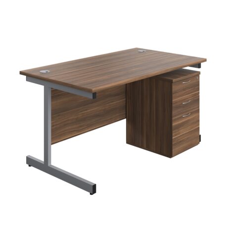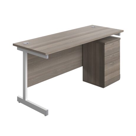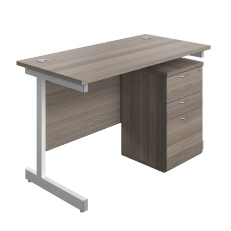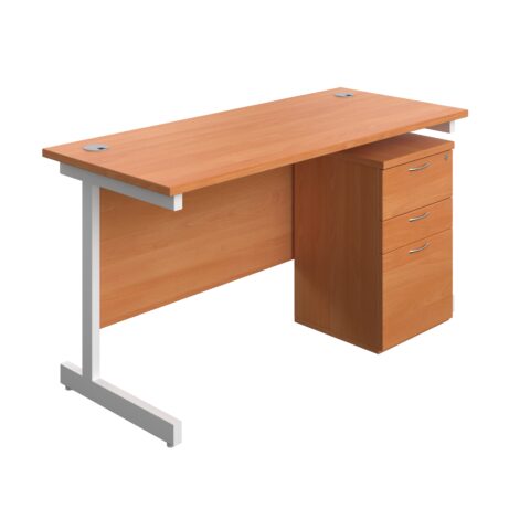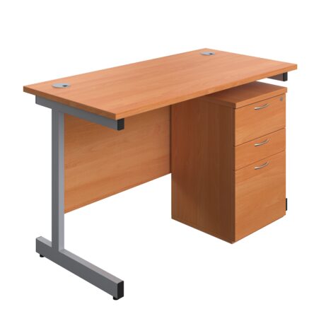 Single Upright Rectangular Desk + High Mobile Pedestal 3 Drawer (FSC)