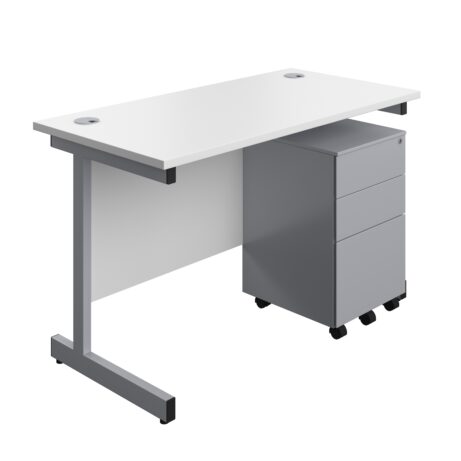 Single Upright Rectangular Desk + Under Desk Steel Pedestal 3 Drawers (FSC)