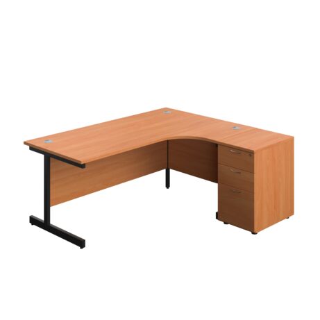 Single Upright Right Hand Radial Desk + Desk High 3 Drawer Pedestal (FSC)