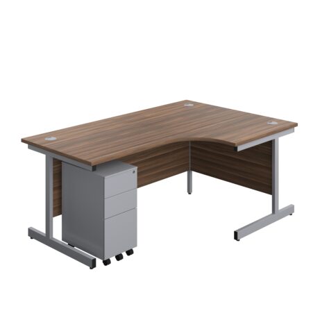 Single Upright Right Hand Radial Desk + Slimline Steel Pedestal 3 Drawers (FSC)