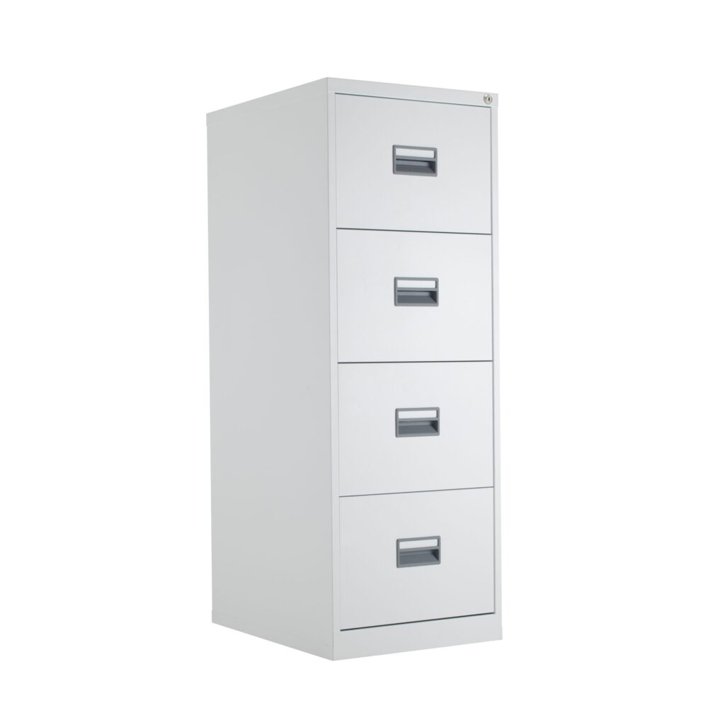 The TC Steel 4 Drawer Filing Cabinet is the perfect solution for your office storage needs. Made from high-quality steel, this 4 drawer steel filing cabinet is built to last. With 100% drawer extension, you can easily access all your files and documents. The anti-tilt feature ensures that the cabinet stays stable and prevents accidents. The cabinet fits A4 side to side with filing bar and foolscap side to side, making it versatile and accommodating to your filing needs. With its sleek design and durable construction, the TC Steel 4 Drawer Filing Cabinet is a must-have for any office.