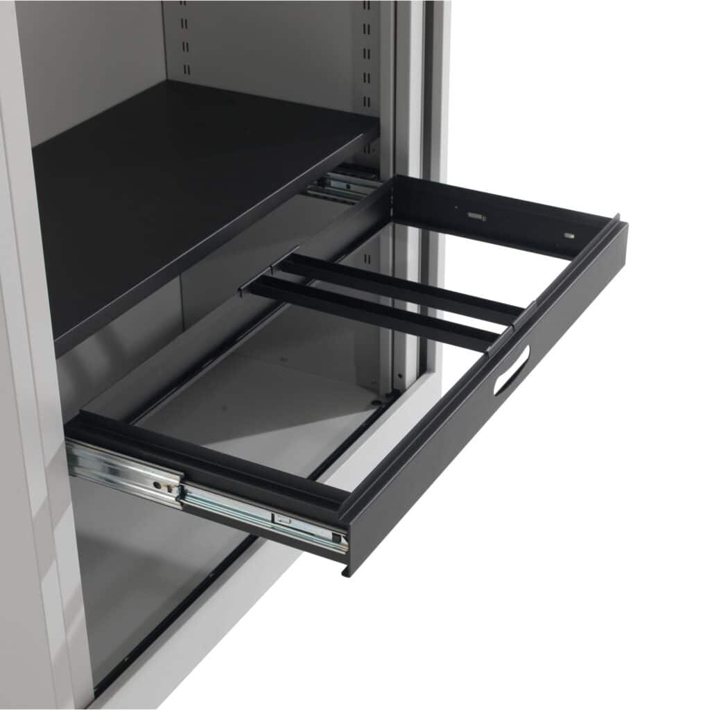 The TC Steel Open Tambour Filing Frame is the perfect solution for organizing your office space. This roll-out tambour filing frame is sold individually and fits A4 front to back or side to side, as well as foolscap front to back on one side only. It is designed to be fitted within a steel office tambour unit, making it a great addition to any workspace. With its durable construction and easy-to-use design, this filing frame is sure to help you stay organised and efficient. Whether you’re looking to streamline your filing system or simply need a better way to store your documents, the TC Steel Open Tambour Filing Frame is the perfect choice. So why wait? Order yours today and start enjoying the benefits of a more organised office!