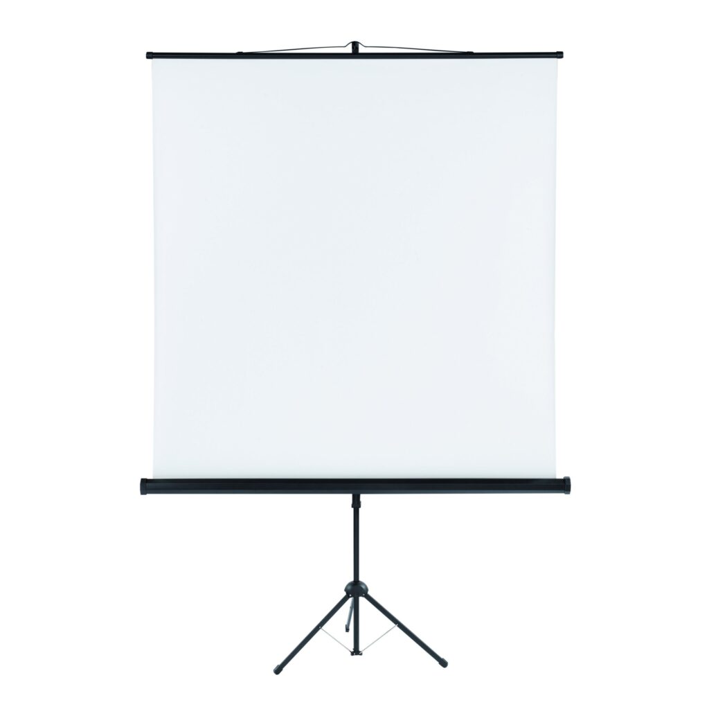 • X-tra!Line(R) Tripod Screens • Matt white screen suitable for LCD and DLP projectors • Clamp ensures optimum screen tension • Fitted with handle for easy transport • Front projection type D • Light density factor approx. 1.0 gain • Manual height adjustable, roll up mechanism • Suspension hooks allow tilting of the projection area • Screen Formats: 1:1 or 4:3 • Comes in Sizes: 150 x 150cm, 180 x 180cm
