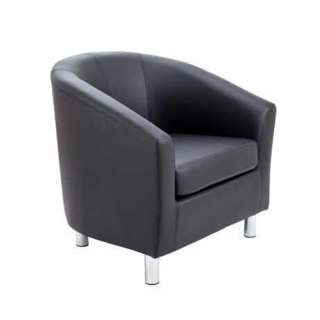 The Tub Armchair with Metal Feet. The deep cushioned seat and back upholstered in PU provide ultimate comfort and support. The adjustable metal feet allow for customization to fit any space. Pre-built for simplicity, this armchair is easy to assemble and ready to use. The sleek design and durable construction make it a perfect addition to any home or office. Upgrade your seating experience with our Tub Armchair with Metal Feet and enjoy the benefits of comfort, style, and versatility.