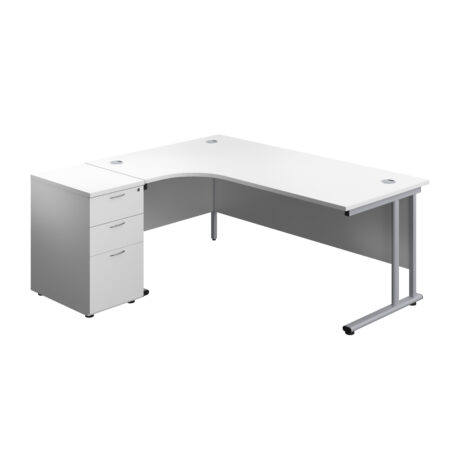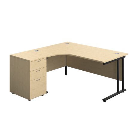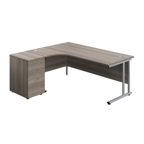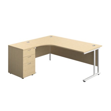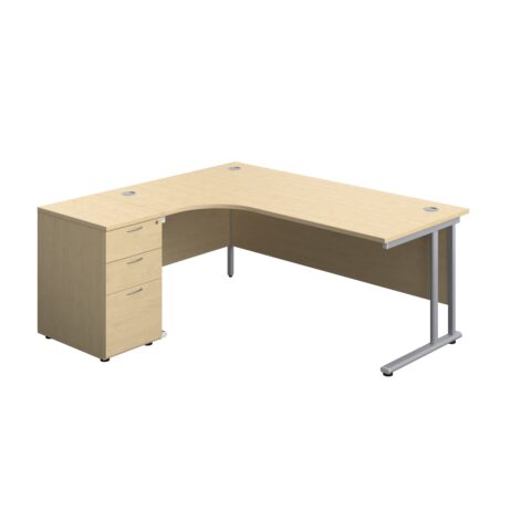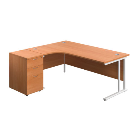 Twin Upright Left Hand Radial Desk + Desk High 3 Drawer Pedestal (FSC)
