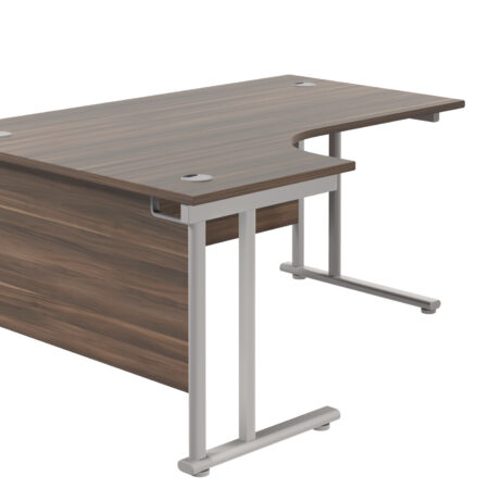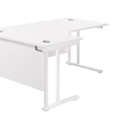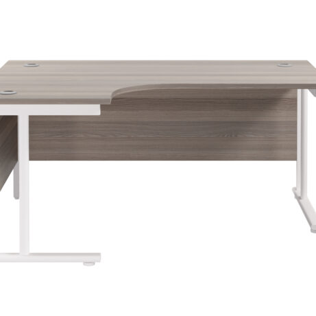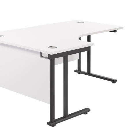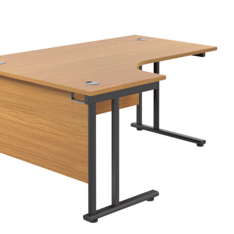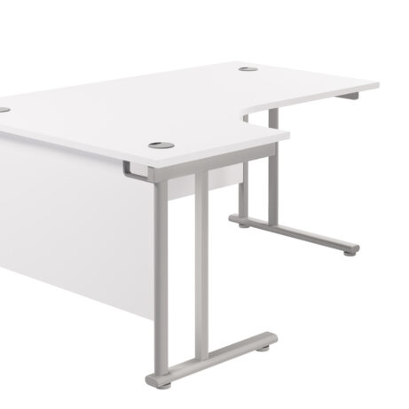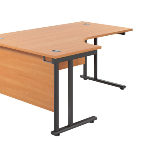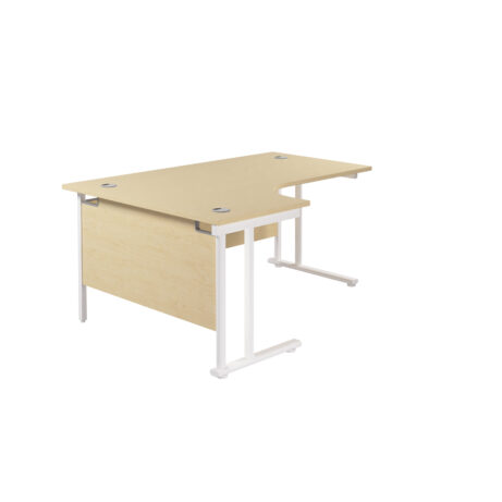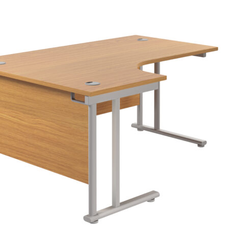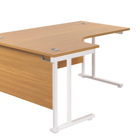 The Twin Upright Left Hand Radial Desk is the perfect addition to any office space. This cost-effective workstation range offers a variety of wooden desktop finishes with steel legs available in white, silver, or black. The adjustable feet ensure that the desk is level on uneven floors, while the cable ports supplied with all desks keep your workspace organised and clutter-free. The left-hand office desk design is ideal for those who prefer to work with their dominant hand on the left side. With its sleek and modern design, this desk is not only functional but also adds a touch of style to any workspace. Invest in the Twin Upright Left Hand Radial Desk for a comfortable and efficient work environment.