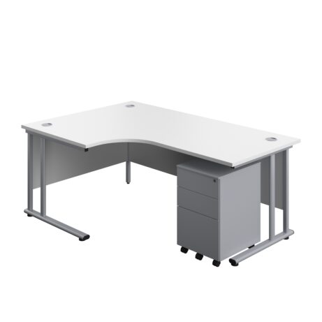 Twin Upright Left Hand Radial Desk + Under Desk Steel Pedestal 3 Drawers (FSC)