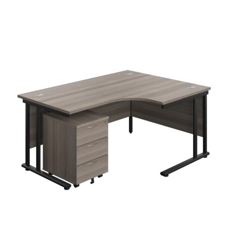 Twin Upright Right Hand Radial Desk + Mobile 3 Drawer Pedestal (FSC)