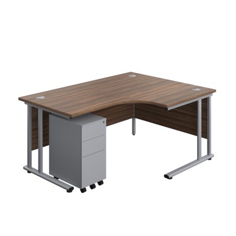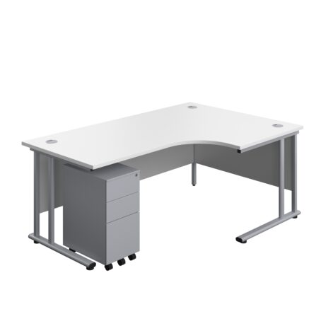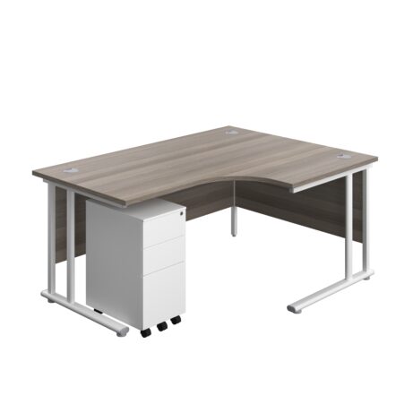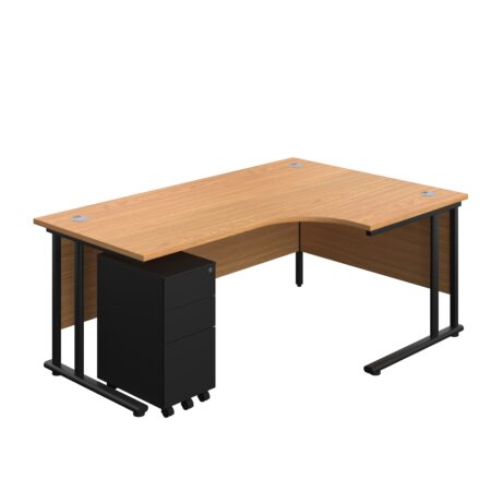 Twin Upright Right Hand Radial Desk + Slimline Steel Pedestal 3 Drawers (FSC)