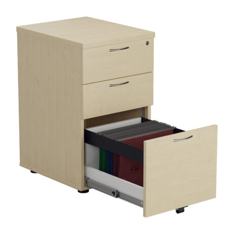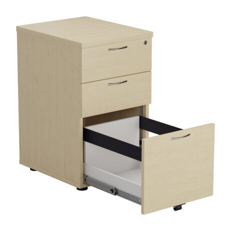 The Under Desk Pedestal 3 Drawer, with fixed glides and 100% bottom drawer extension, this under desk static pedestal provides easy access to all your important documents and supplies. The three spacious drawers offer ample storage space for all your office essentials, while the sleek design ensures it fits seamlessly under your desk. Say goodbye to cluttered desks and hello to a more productive work environment with this versatile and practical pedestal. Whether you’re a busy professional or a student, this product is a must-have for anyone looking to maximise their workspace and stay organised.