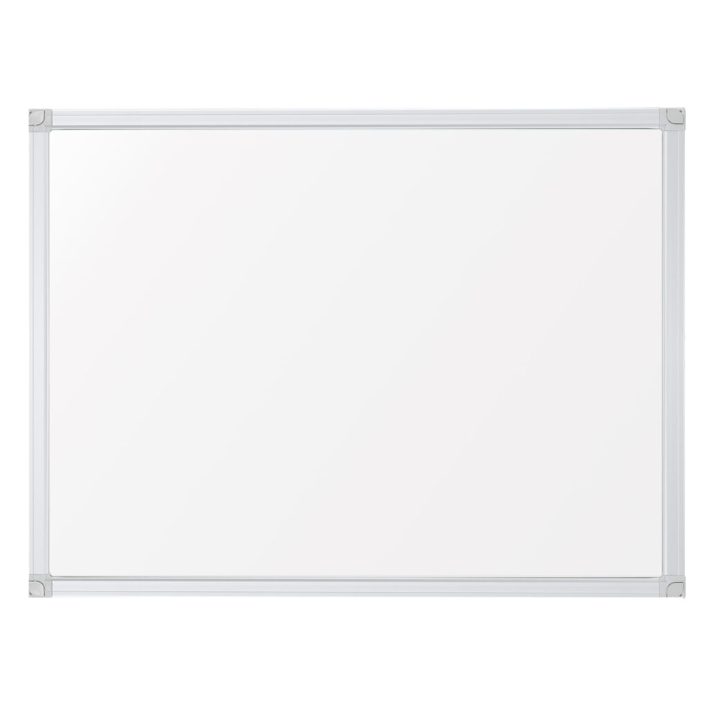 • Franken Valueline Whiteboard • Sizes: 150 x 100cm, 200 x 100cm or 300 x 120cm • Perfect for training, conference, meeting rooms and schools • This sturdy whiteboard with 12mm anodised aluminium frame construction • Drywipes easily, even after a long period of use and can be assembled landscape or portrait to fit your needs • The surface is not only magnetic drywipe and scratch proof but it is also acid resistant and comes with a 25-year guarantee • The fixings are concealed through the corners for a sleek look • Marker tray and wall mounting kit is included • The office of the future is a multifunctional space of interaction that foments team work • Our whiteboards are great alternatives to promote it, providing an easier and cleaner way to stay organized