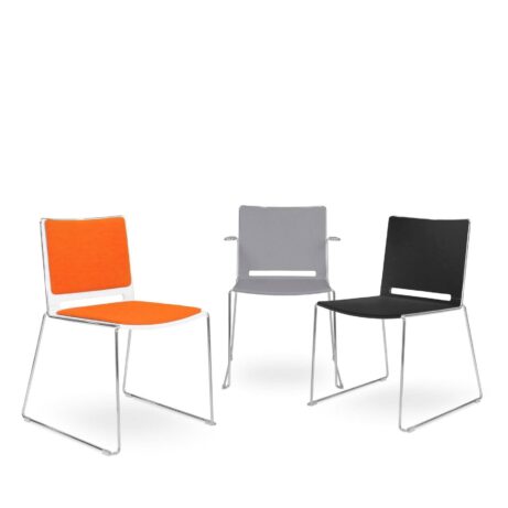 Vice Versa is an innovative product with distinctive lines, designed by Alberto Basaglia and Natalia Rota Nodari. It is assembled without screws and features a patented interlocking system that keeps costs to a minimum and facilitates disposal at the end of life. Vice Versa is a multi-purpose chair with a design that combines functionality, style and strength. The seat and backrest are injection moulded using fireproof polypropylene and are available in six colours, whilst the frame is made from steel wire and can be either chrome plated or epoxy-powder coated in a Silver, Black Graphite, White, Black, Praline, Olive Green, Atlantic Blue, Sapphire Blue, Mustard Yellow, Terracotta and Conker Brown. Vice Versa Mesh offers a range of options including a polypropylene or upholstered seat with a mesh backrest available in three colours. When combined together, the possibilities for personalisation and customisation are comprehensive. This is a chair suitable for a variety of tasks and environments.