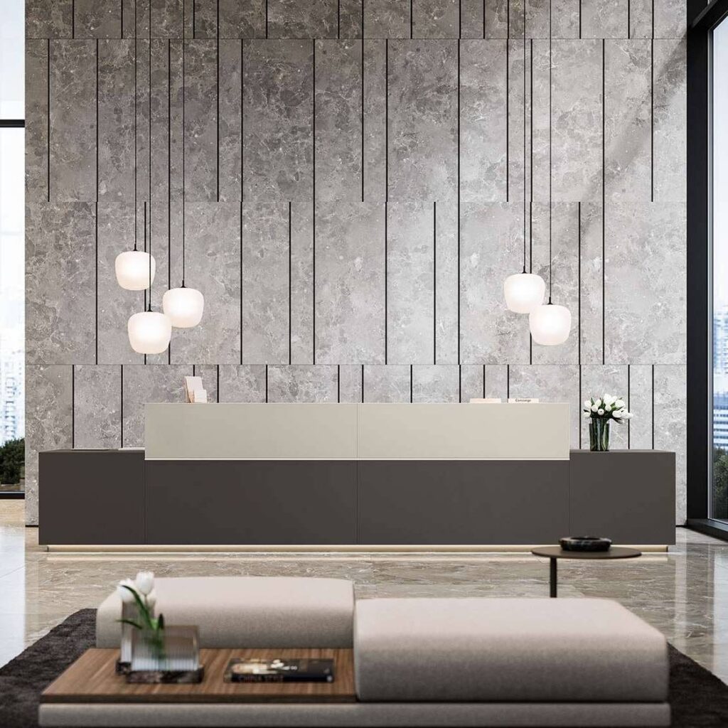 The Z1 Reception is characterised by rigorous and elegant lines, which combine style and functionality in a modular product. Z1 develops with imposing volumes, which furnish without being overbearing. The spacious top and functional accessories make Z1 an example of order and practicality. Cable trays and doors for access to cables discretely conceal cables, preserving the aesthetic appeal of the reception area. Lighting is a central feature of Z1: the rational geometry of lines is highlighted by led strips, which define intersecting modules and exalt the dialogue between main bodies and the base. The led lamps complete the composition, illuminating the interior to create an inviting ambience. Thanks to the product’s modularity, the composition of Z1 elements adapt to different space and function requirements. The structure is available in a lacquered finishing, with colour options ranging from vibrant to neutral and pastel tonalities, which are soft and enveloping, so that it adapts to different kinds of interiors.